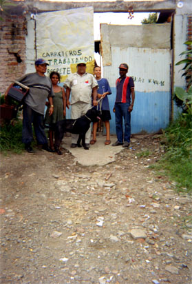 Plano medio. Trabajadores. División del campo visual, en dos franjas. Realce de textura de suelo, con fragmentos de piedra.