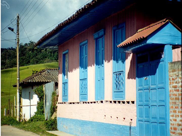 Juan Carlos Lopez (1999). Típica casa campesina, vistosa, con puertas de dos naves que al abrirse quedan como balcones & A850. VERSALLES: Biblioteca Departamental Jorge Garces Borrero.