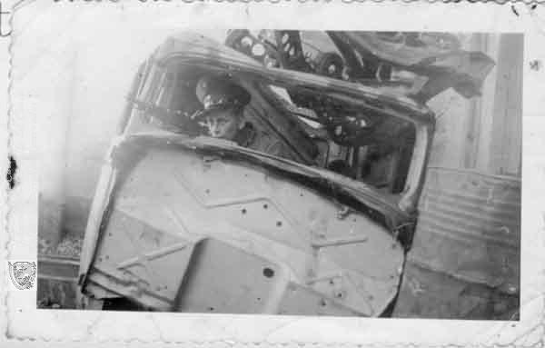 Oscar Emilio Dávila en un carro del batallón Codazzi. Cali. 1940.
