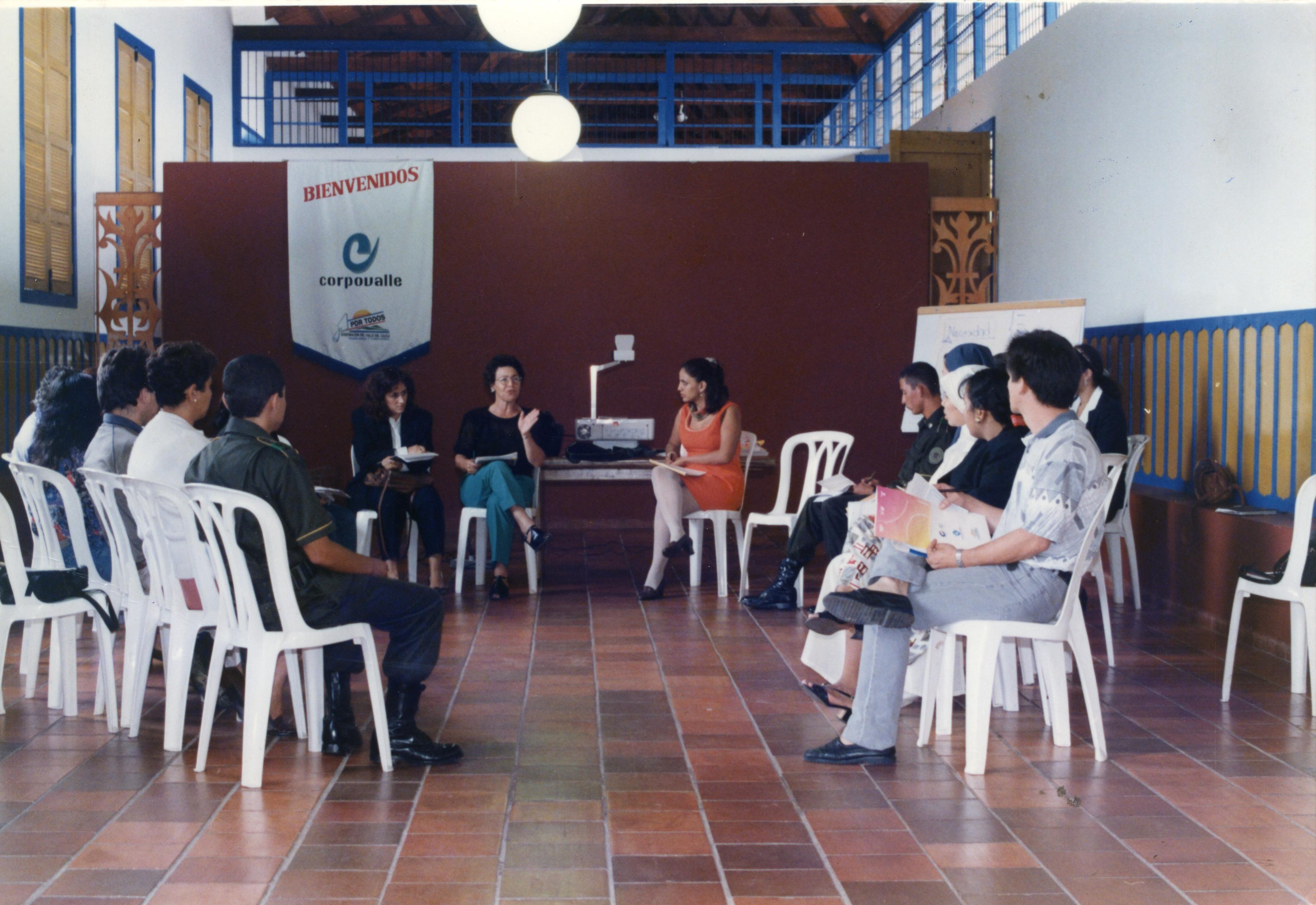 Al reverso de la fotografía se anexa el pie de foto del periódico: se realizaron talleres en varios municipios del Valle para enseñar a diseñar proyectos