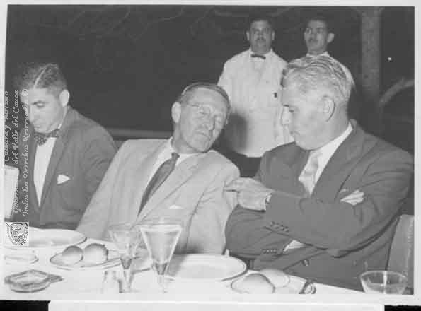 FOTO MULT (1959). De izquierda a derecha: Antonio Garcés Sinisterra, Harold Eder y Orvis A & 500588. SANTIAGO DE CALI: Biblioteca Departamental Jorge Garces Borrero.