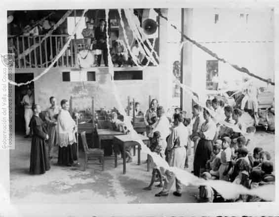 FERNANDO HENAO (1960). Bendición de la primera parte del cuartel de Bomberos, oficiada por el Padre Martínez & 601355. CAICEDONIA: Biblioteca Departamental Jorge Garces Borrero.