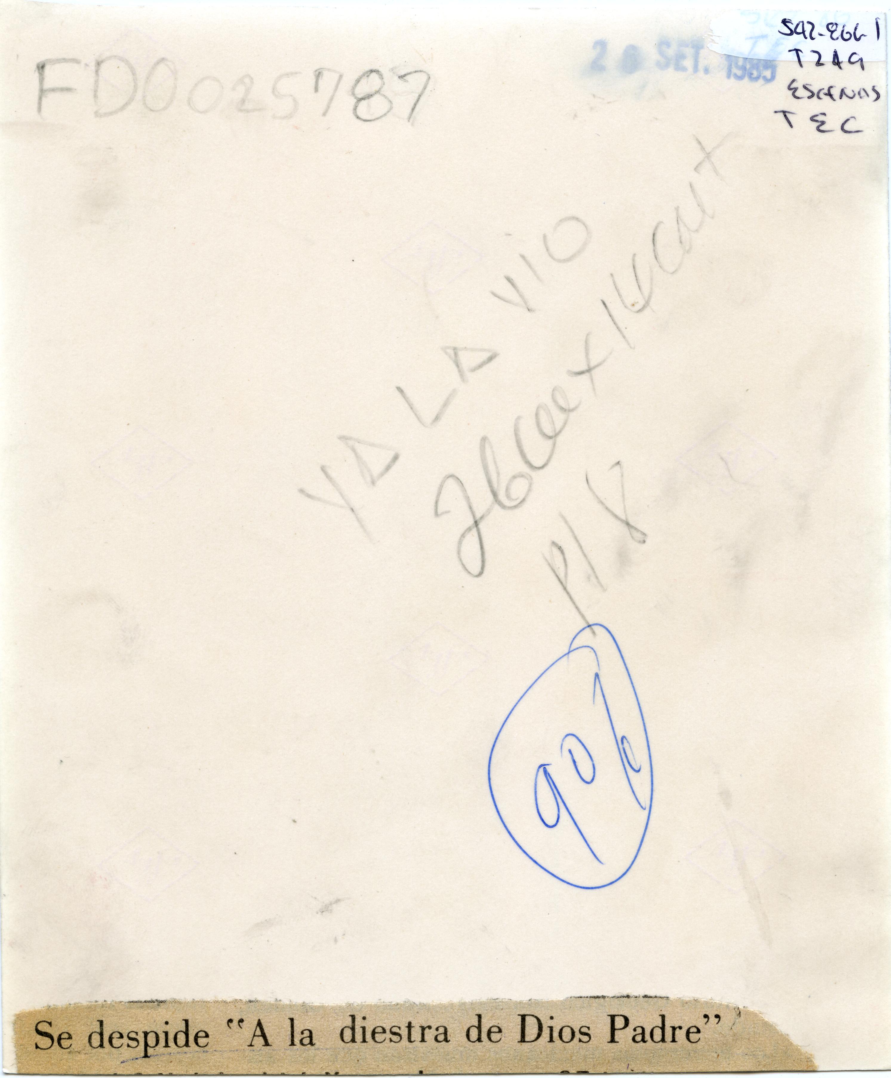 En la gráfica dice: Se despide "A la Diestra de Dios Padre".