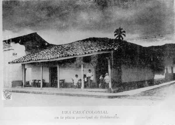 ANONIMO (1900). Casa colonial, ubicada en cercanías a la plaza principal, llamada El Corredor Polaco & 401598. ROLDANILLO: Biblioteca Departamental Jorge Garces Borrero.