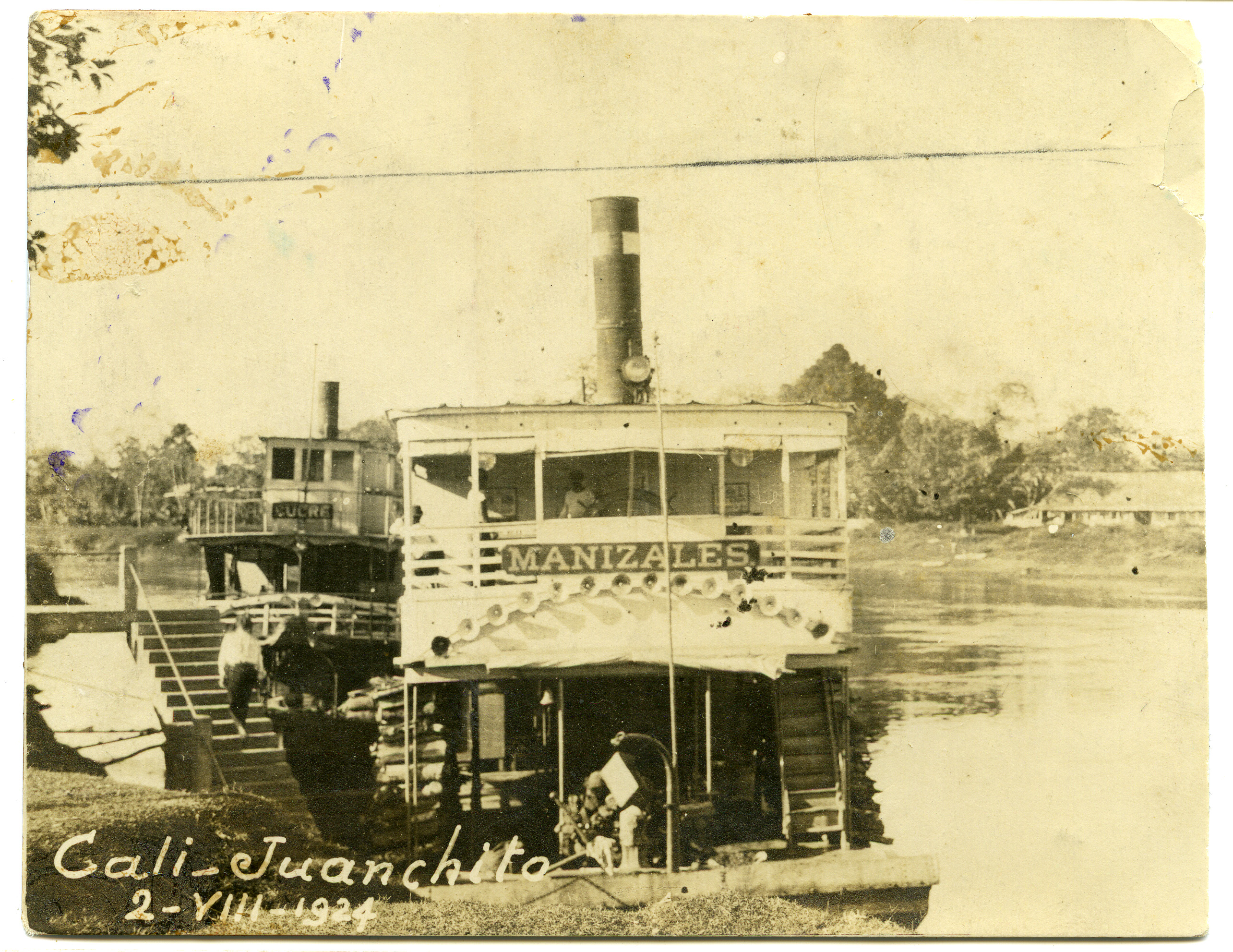 | dc.description.abstract | Duplicado postal de fotografía del Cali viejo, Cali - Juanchito, 2 - VIII - 1924, buque "Manizales" a vapor por el río Cauca. | spa |