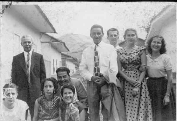 Guillermo Rodríguez, Eliodoro Torres, Jaime de la Cruz, Mery Bebitez, Aminta de la Cruz, Judith Toro, Cervelion Guagura y Ligia de la Cruz. En esta fotografía se destaca Las moda de los años cuarenta por ser conservadora pero muy elegante. Bolívar, C. 1940.