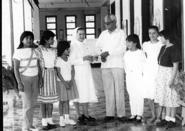 El señor Marco Antonio Arenas realizando una donación en el orfanato del municipio. Tuluá, 1985