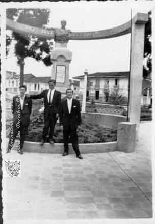 Federico Cuéllar (terecero) y sus amigos, en el parque Bolívar, detrás un busto del Libertador Simón Bolívar
