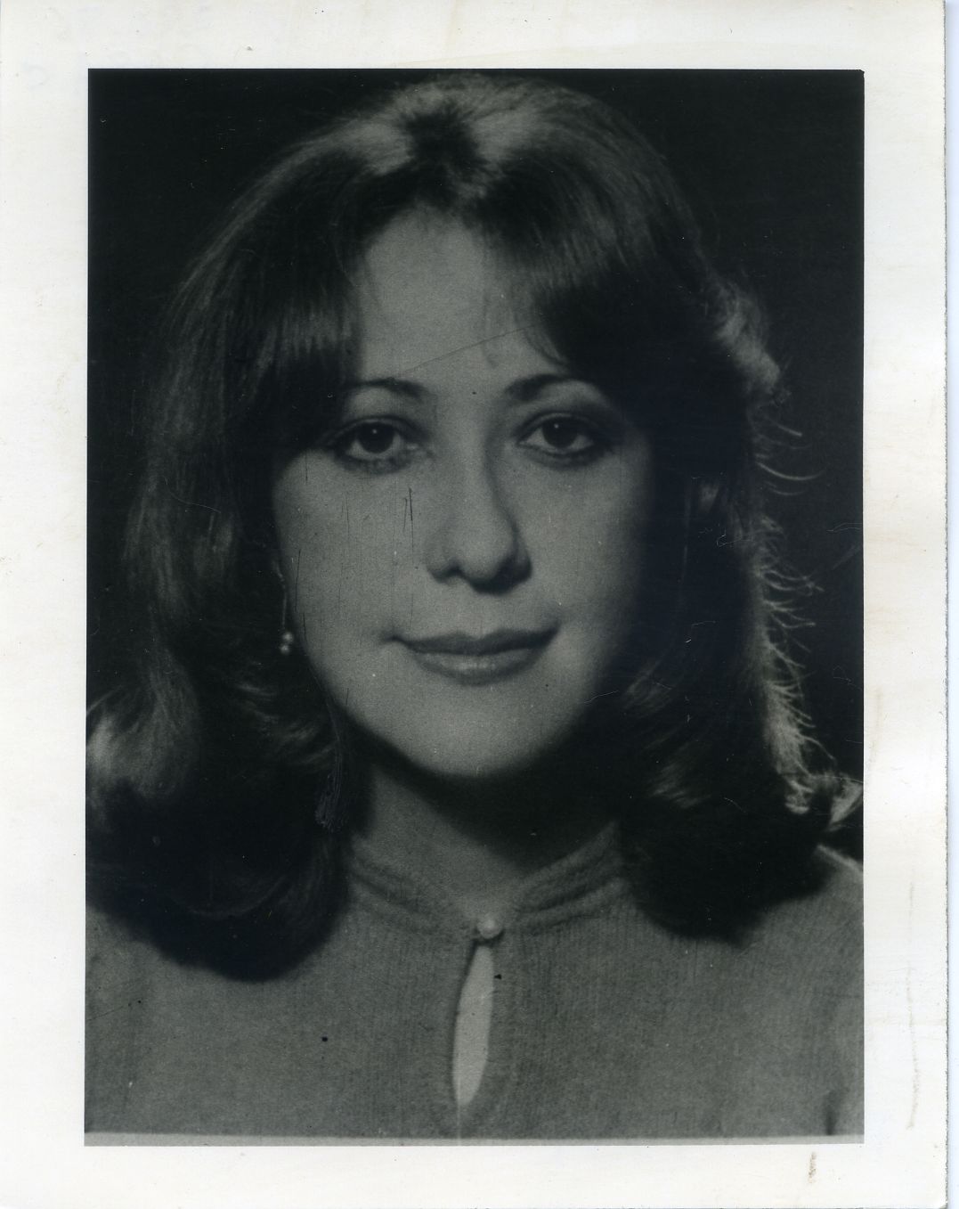 Fotografia de primer plano de Clara Victoria Colbert de Arboleda, donde se aprecia de frente con el cabello suelto en los hombros con una pequeña sonrisa