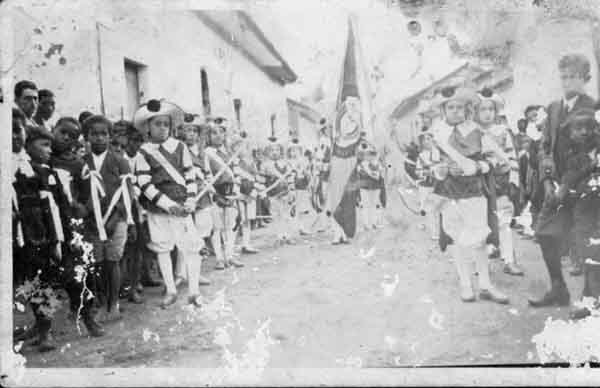 Desfile de los "Seises", los niños cumplían 6 años de edad. Este día también se hacían primeras comuniones. Palmira, 1927.