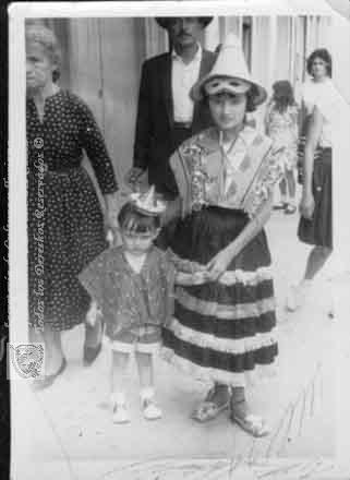 Con los trajes adecuados para la celebración de las fiestas populares. Sevilla, 1960.