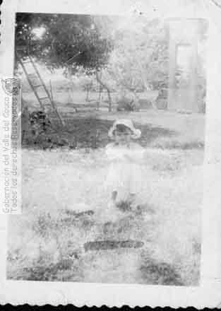 La niña Cenaida Abadía disfrutando del entorno natural de la finca El Oasis en Guacarí. C. 1957.