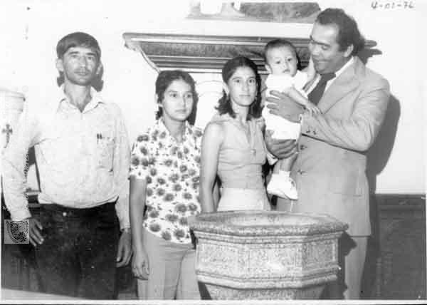 Mientras el padre llega para este bautizo, observemos las "pintas" de estos feligreses de esta ocasión. 1976