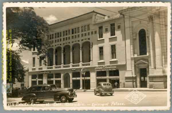 s. n., s. n. & s. n. (1945). Edificio del Palacio Episcopal, al lado berlinas de la Época & 100124. SANTIAGO DE CALI: Biblioteca Departamental Jorge Garces Borrero.