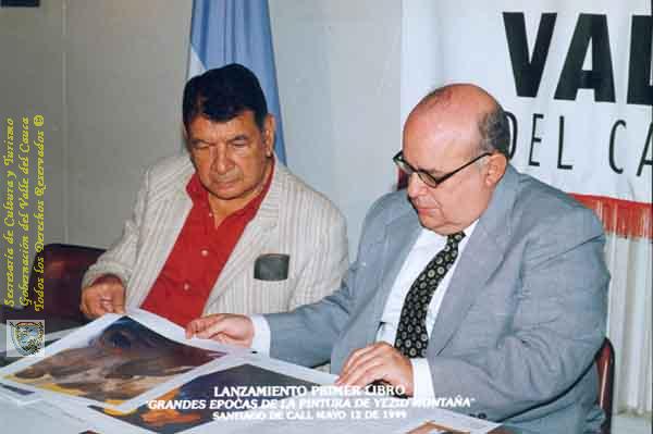 Yesid Montaño y el exgobernador Humberto Alzate, en el lanzamiento del libro del maestro Montaño titulada "Grandes épocas de la pintura de Yezid Montaña ". Santiago de Cali, 1.999