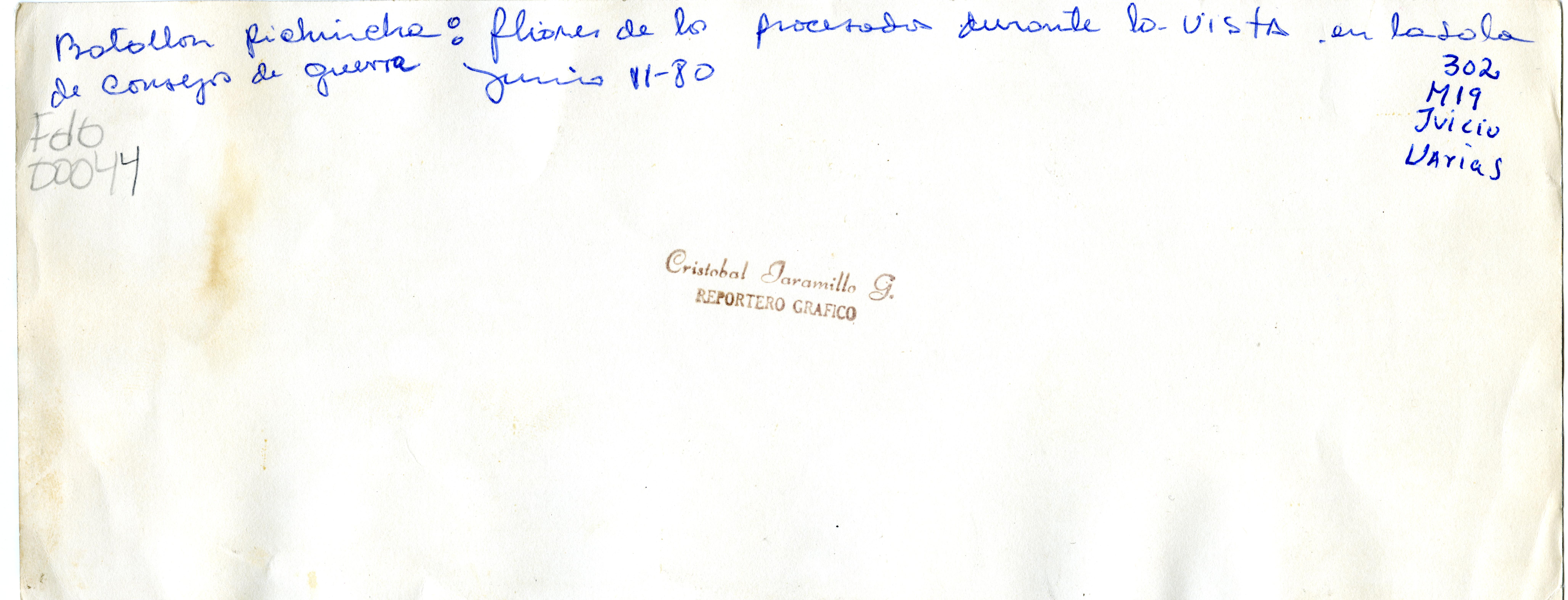 Familiares de procesados del M-19, durante la visita en la sala de Consejo de Guerra en el Batallón Pichincha. El Archivo del Patrimonio Fotográfico y Fílmico del Valle del Cauca es responsabilidad de la Biblioteca Departamental del Valle Jorge Garcés Borrero, por convenio de cooperación suscrito con la Secretaria del Cultura Departamental, con el fin de aunar esfuerzos para su conservación, preservación y divulgación del Archivo entre la comunidad Vallecaucana, especialmente entre los estudiantes e investigadores que visitan la Biblioteca, propiciando el su uso y consulta permanente. La universidad Icesi es un colaborador en el proceso de difusión, facilitando la tecnología que permite la consulta de las imágenes.