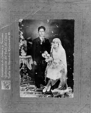 FOTO COSTEÑA (1926). Antonio Tamayo Vinazco y Elvira Quintero, el día de su boda & 501996. LA UNION: Biblioteca Departamental Jorge Garces Borrero.