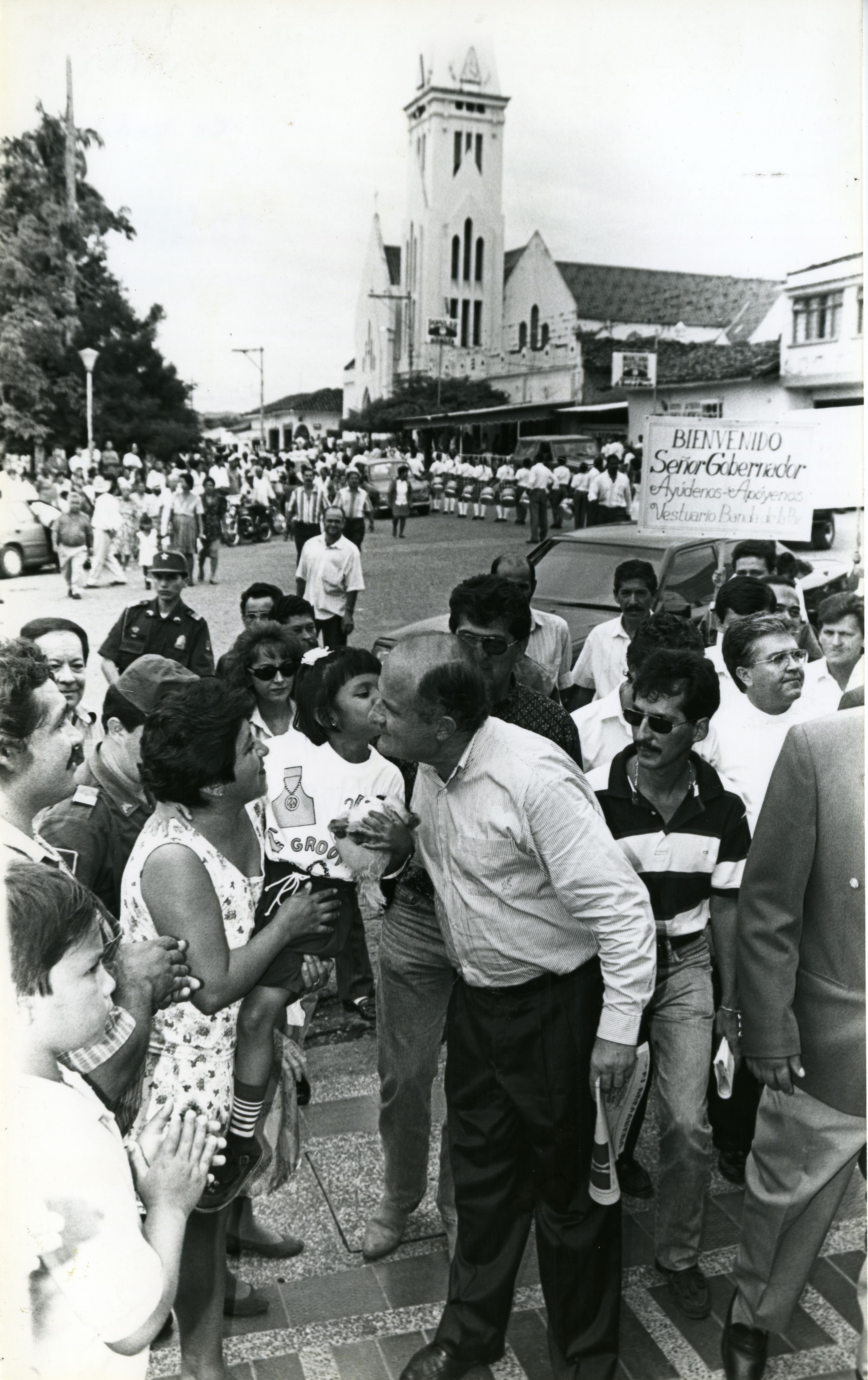 El gesto tierno de una niña que da un beso al gobernador Germán Villegas Villegas durante su visita al municipio de Andalucía, refleja el agradecimiento de la comunidad por el impulso que dará las obras contempladas en el Convenio Social