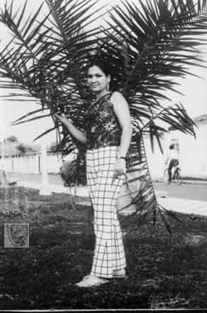Podría decirse aqui que Olga María es un mujer de su época: telas a cuadros y pantalones de bota muy ancha constituyen su "pinta"