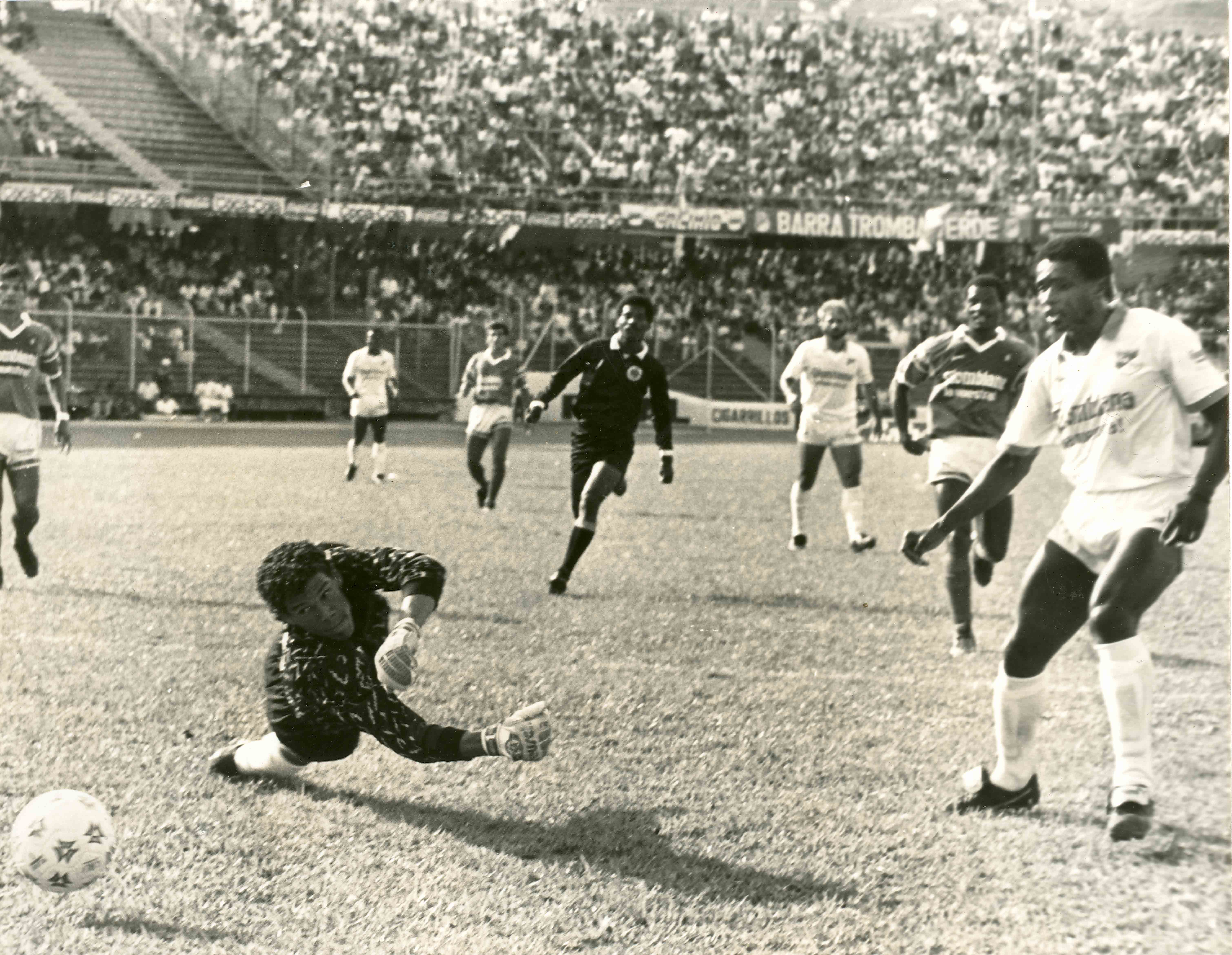 Partido de fútbol con la presencia de jugadores del Deportivo Cali, se destaca del encuentro el arquero Oscar Córdoba, del Deportes Quindío. El Archivo del Patrimonio Fotográfico y Fílmico del Valle del Cauca es responsabilidad de la Biblioteca Departamental del Valle Jorge Garcés Borrero, por convenio de cooperación suscrito con la Secretaria del Cultura Departamental, con el fin de aunar esfuerzos para su conservación, preservación y divulgación del Archivo entre la comunidad Vallecaucana, especialmente entre los estudiantes e investigadores que visitan la Biblioteca, propiciando su uso y consulta permanente. La universidad Icesi es un colaborador en el proceso de difusión, facilitando la tecnología que permite la consulta de las imágenes.