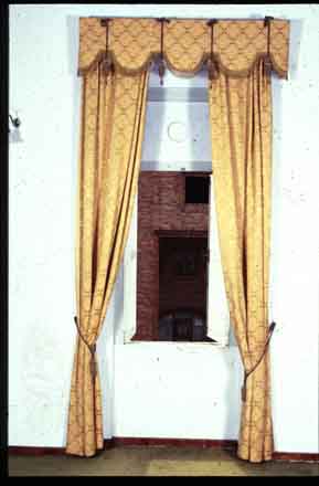 Cortinas en tela bordada del año 1940. Teatro Municipal de Cali. C. 1990