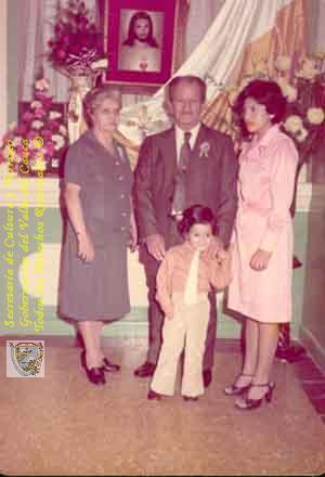 Oliva Alzate, Víctor Alzate, Israel Alzate e Isabel de Alzate. Celebración familiar. Santiago de Cali, C. 1976.