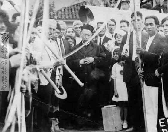 s. n., s. n., s. n. & s. n. (1935). Ceremonia de inauguración de la primera piedra para la construcción del templo parroquial Nuestra Señora del Carmen de Caicedonia & 601382. CAICEDONIA: Biblioteca Departamental Jorge Garces Borrero.