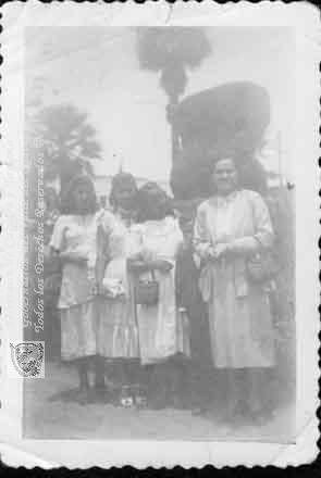 Josefina Villegas, Carolina Villegas, Rosa Ortíz, Rubiel Londoño y Rosana Morales, de visita en la hacienda la María. Un lugar turísco de la región del Valle por la historia que cuenta Jorge Isaccs que sucedio allí. Es muy concurrido por los vecinos de todo el departamento y del país. Cerrito. 1955.