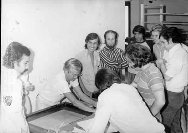 | dc.description.notes | DE IZQUIERDA A DERECHA DOS MAESTROS DE LA PINTURA, LORENZO HOMAR Y JORGE MONTEALEGRE, LUEGO JOSÉ CLAROL, GLORIA DELGADO Y HERNANDO GUERRERO.Participan con los maestros en clases de serigrafía. Santiago de Cali, C. 1975. | spa |