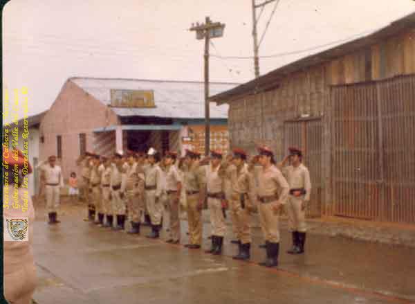 Cuerpo de Bomberos Voluntarios, en ceremonia de formación. Versalles C.1983.