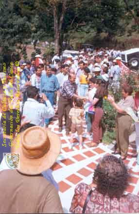Gustavo Alvarez Gadeazábal, Gobernador del Departamento, Guillermo Castaño Alcalde Municipal y Edilma Restrepo, habitante del Aguila. Durante la celebración de las fiestas de la Inmaculada Concepción. El Aguila diciembre 8 de 2000.