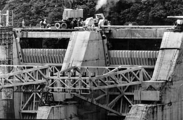 Parte final de la construcción de la hidroeléctrica de Anchicayá. Buenaventura, C. 1979.