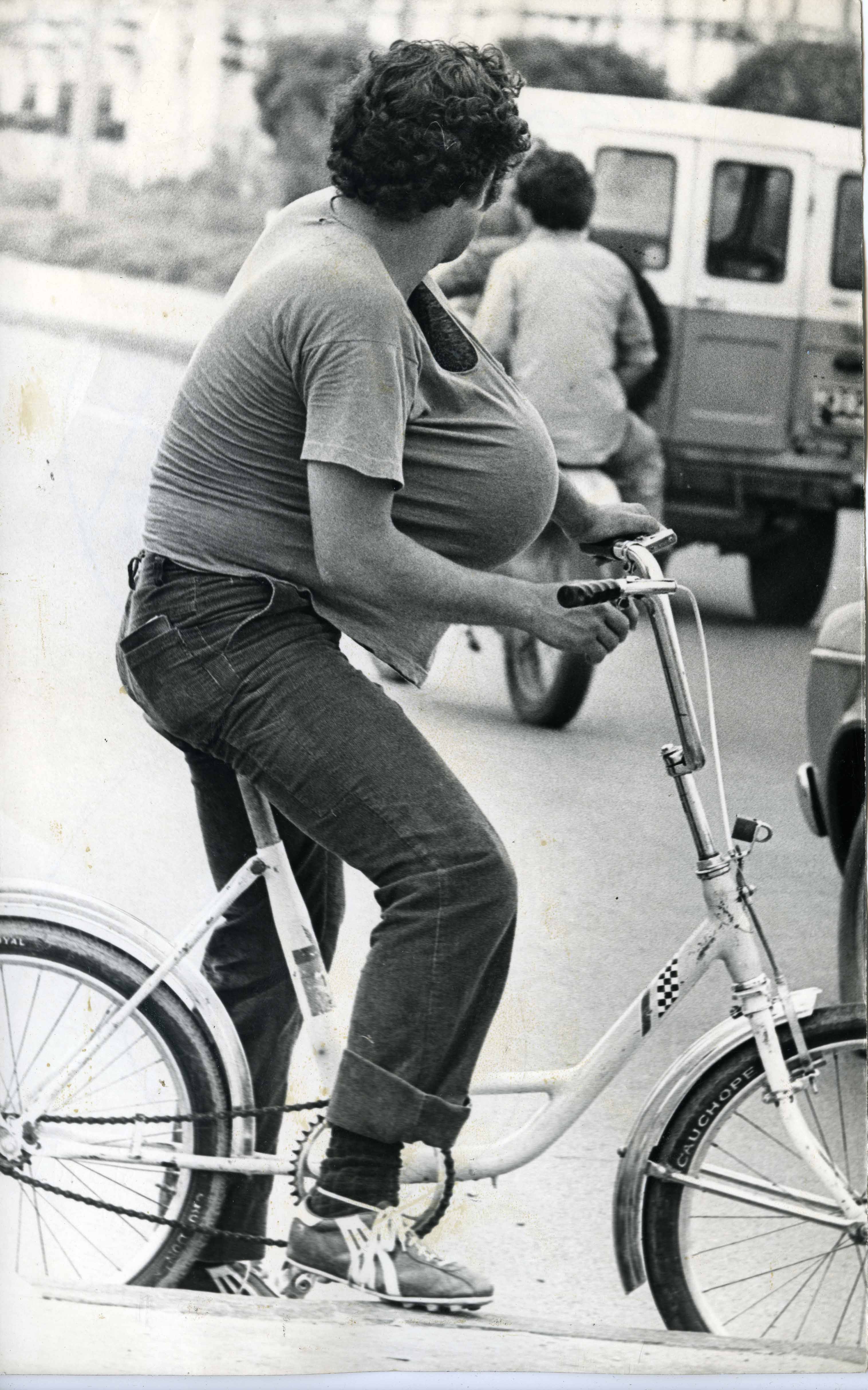 Jóven en bicicleta, parqueado a un lado de la carretera y ocultando balón.