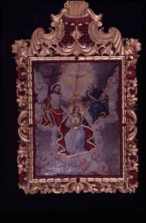 Nuestra Señora del Santísimo Sacramento. Pintura en vidrio. Iglesia de San Francisco, Santiago de Cali, C. 1990