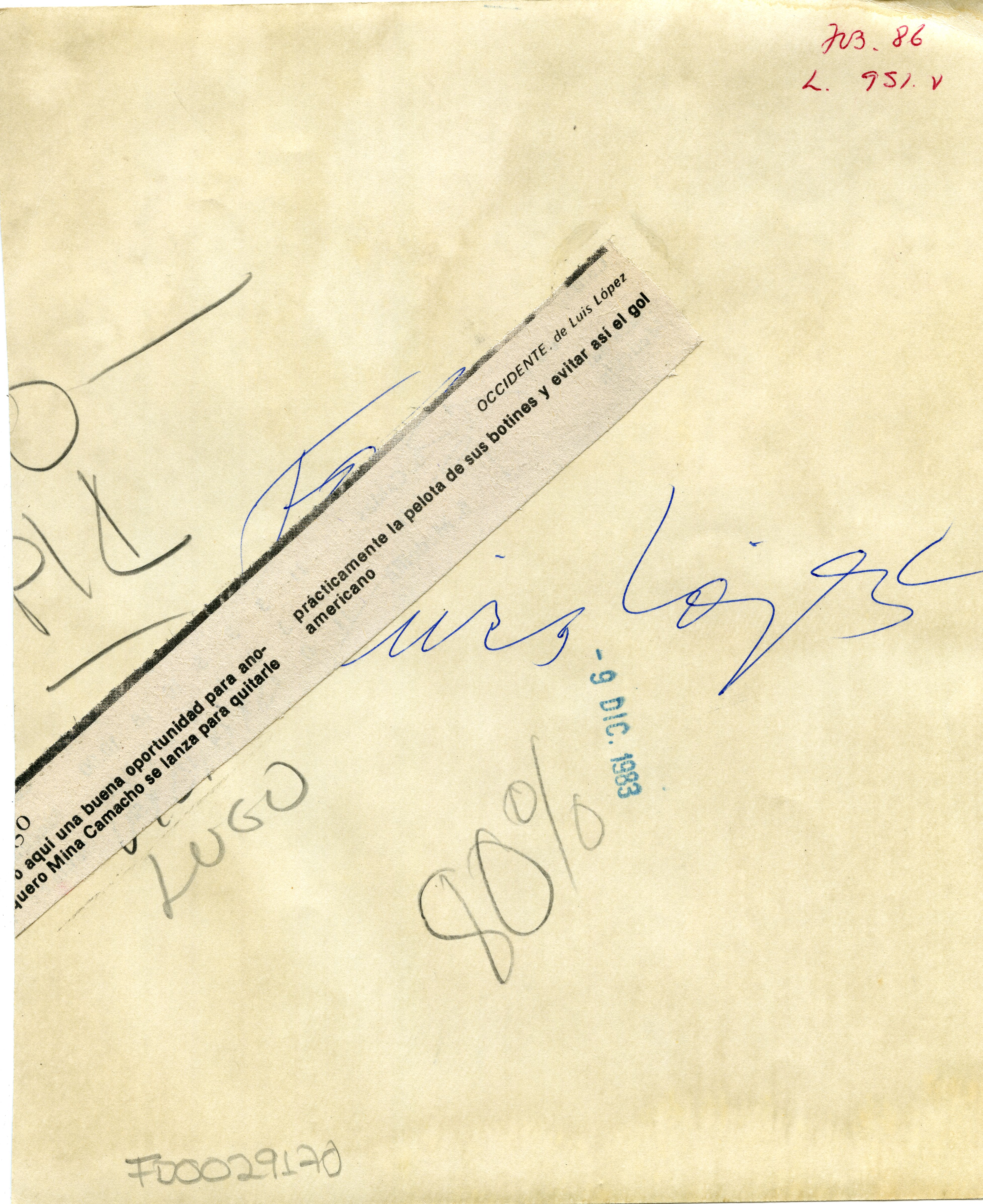 Víctor Lugo fue conocido como el “fabricador de penales” por la cantidad de este tipo de faltas que le pitaron a su favor, durante su carrera deportiva. Anotó 76 goles con el equipo, incluyendo el segundo tanto que le daría a la institución su primer titulo, en 1979. Participó también en la Selección Colombia. Observamos al jugador disputando un balón con el arquero James Mina Camacho,en partido contra el Independiente Santa Fe.
