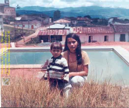 MERY TRUJILLO y la niña GLORIA. AL FONDO PISCINA DEL COLEGIO COMERCIAL SAN PIO X DE LA CUMBRE.