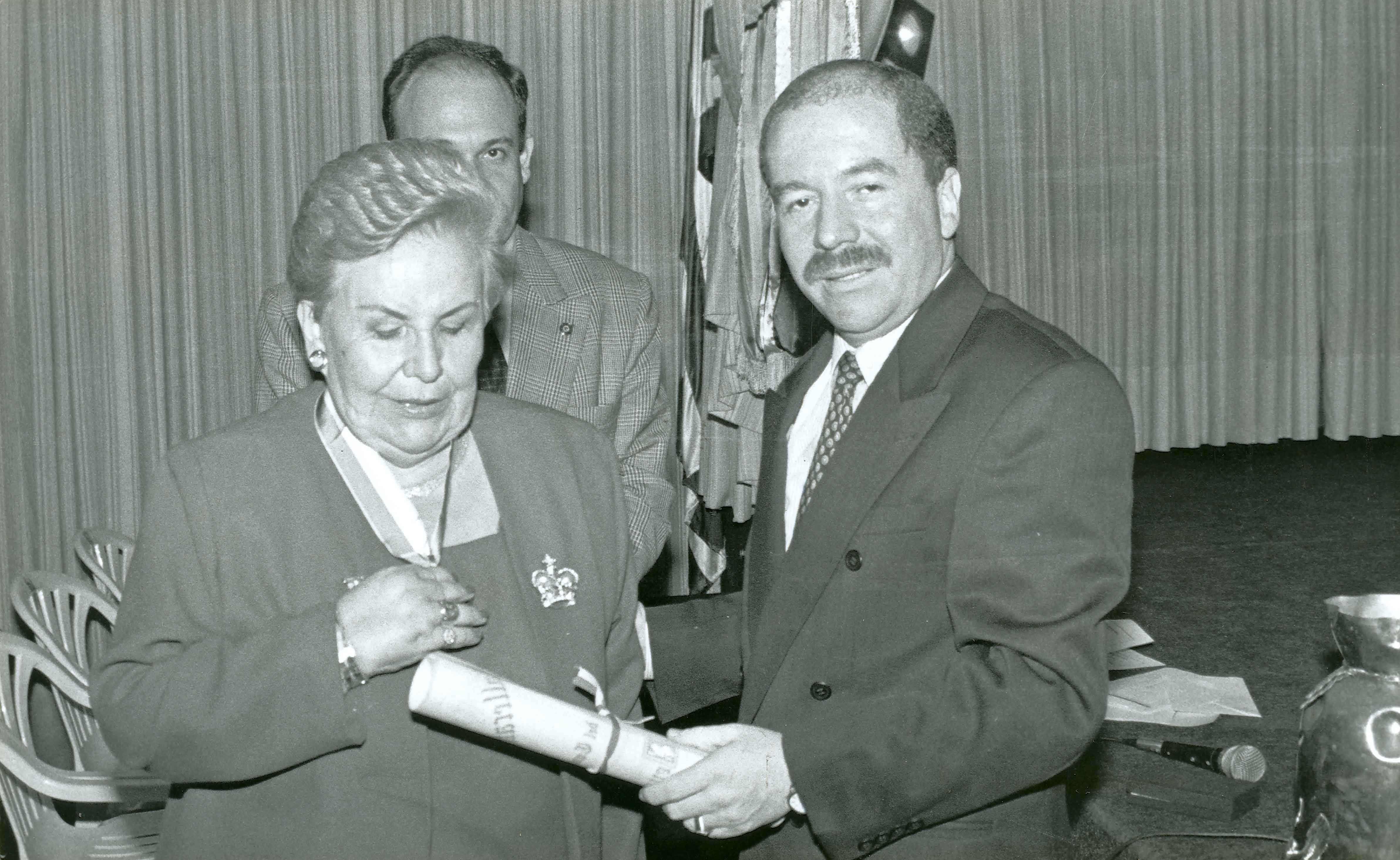 Mercedes Herrera de Tenorio, educadora, recibe condecoración en sus bodas de oro profesionales, de parte de la gobernación del Valle