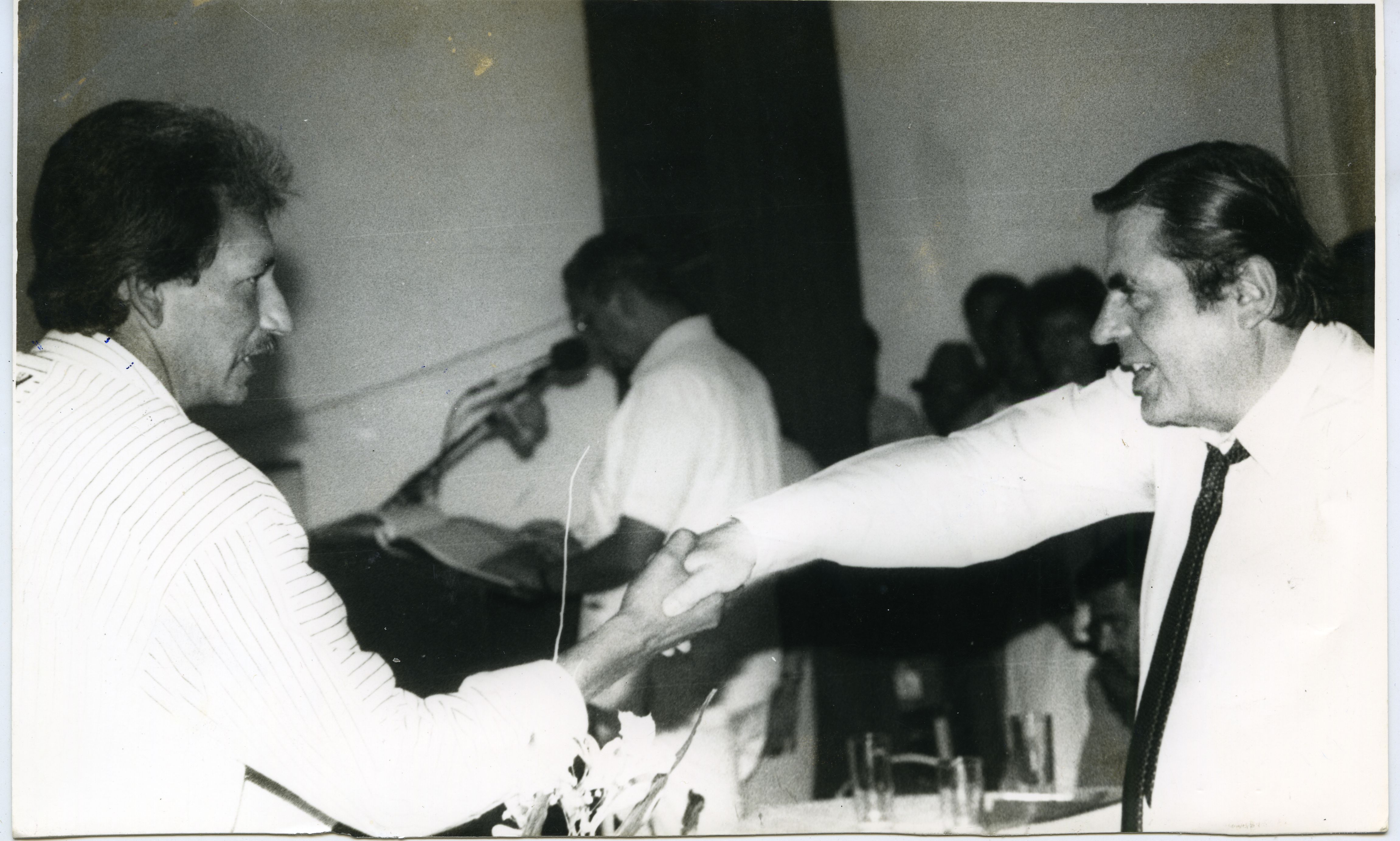 La fotografía enmarca el apretón de manos entre el entonces gobernador del Valle del Cauca, Ernesto González Caicedo y el alcalde del municipio de El Águila, Hernando Duarte, por razón de entrega de auxilios económicos.