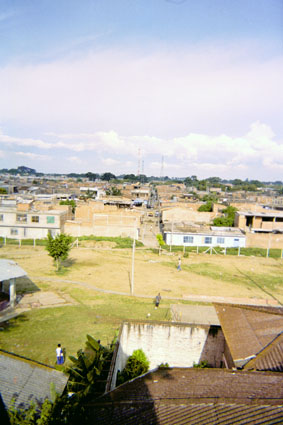 | dc.description | Plano general. En la imagen se puede apreciar un parque y la vista panorámica de los tejados y casas del barrio, al fondo se destaca el color azul claro del cielo. Toma en picado. | spa |