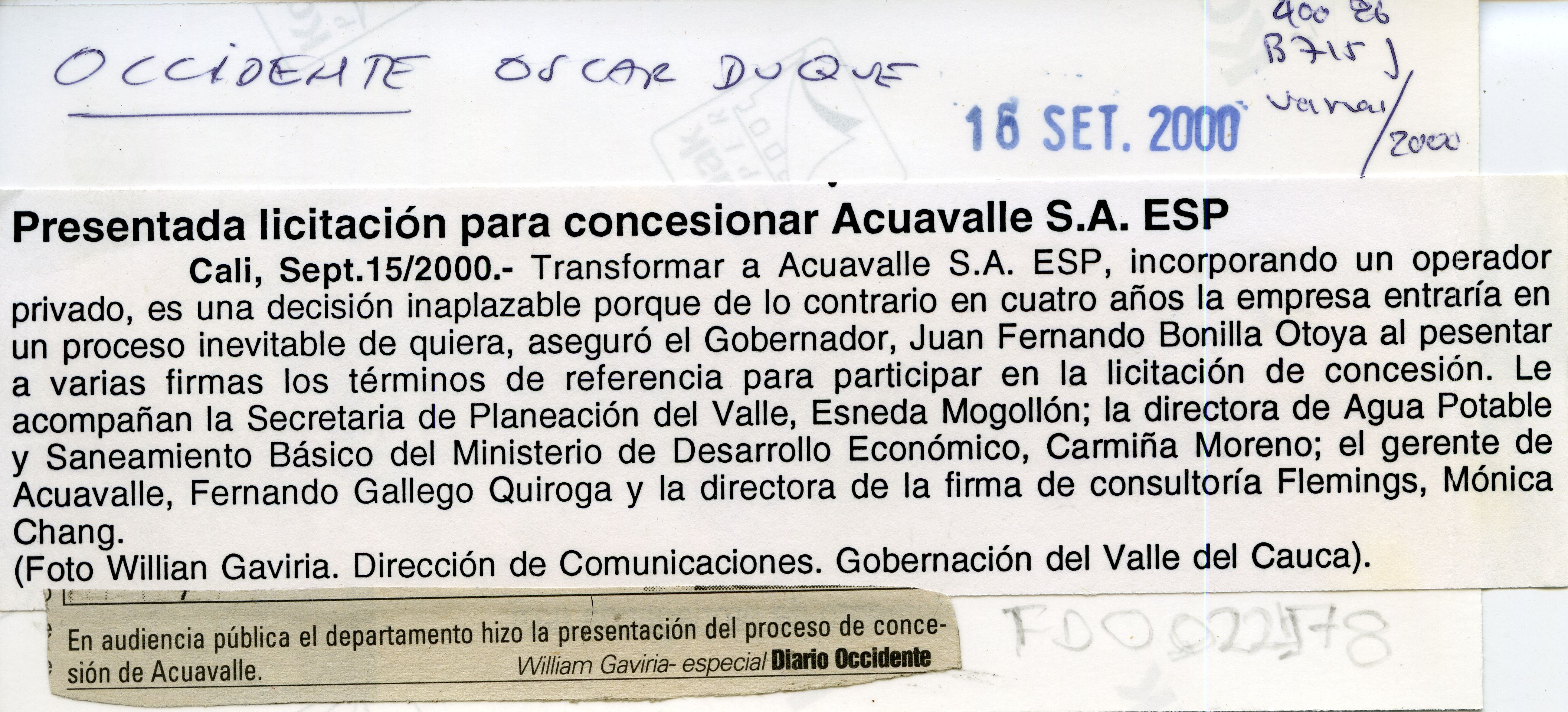 Licitación para concecionar Acuavalle