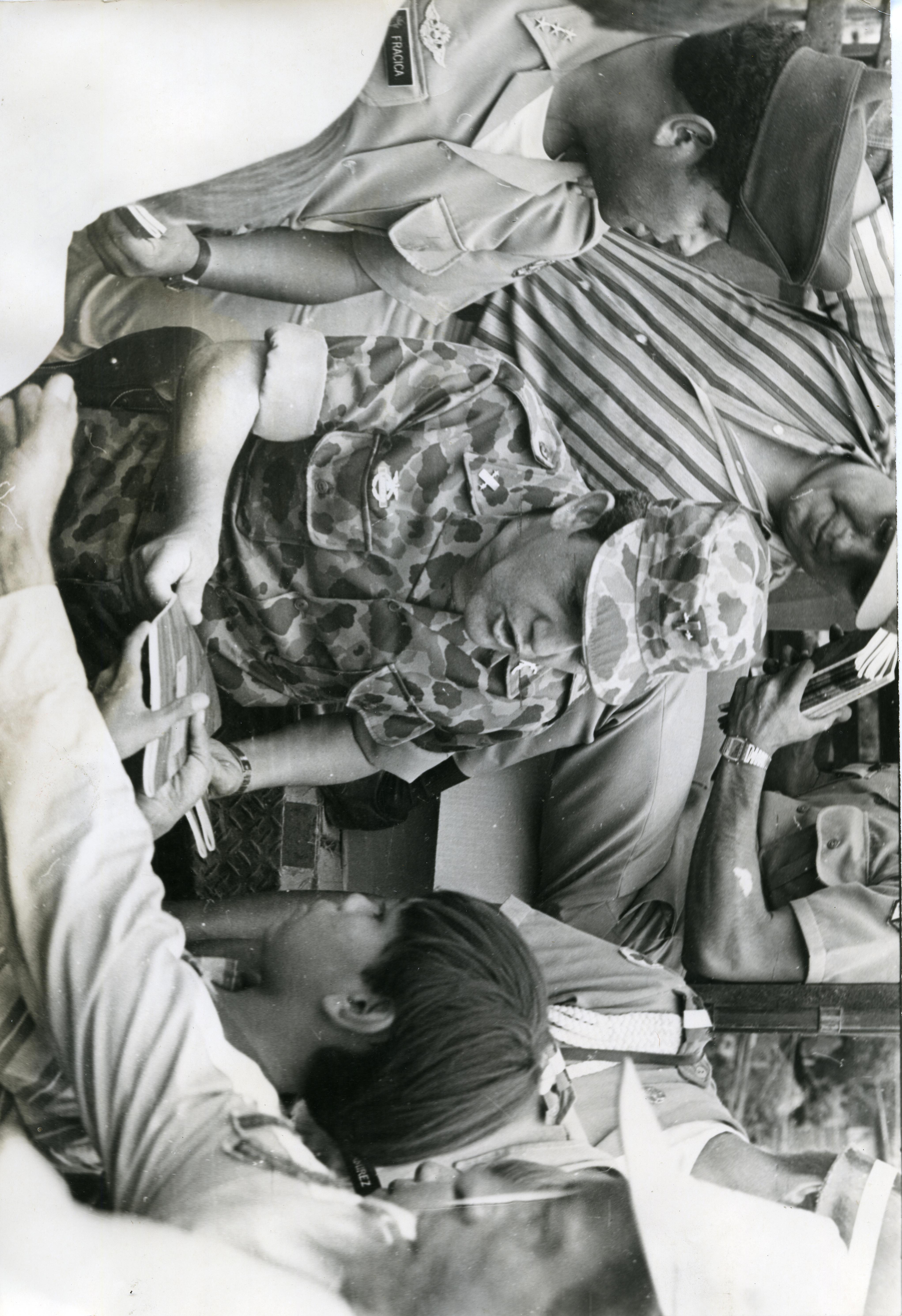 | dc.description.abstract | Reverso "El teniente coronel Ricardo Agreda Pinillos, comandante del Batallón de Policía Militar número tres hace entrega a los niños de Yumbo de cuadernos y libros, labor cumplida durante la segunda jornada de acción cívico-militar en esta localidad. Detrás de él aparece el alcalde Jairo Romero, quien participó durante los dos días en cada una de las actividades programadas." Manuscrito "El coronel Agreda reparte cuadernos a los niños de Yumbo, lo acompaña el alcalde Jairo Romero y el Mayor Fracica." | spa |