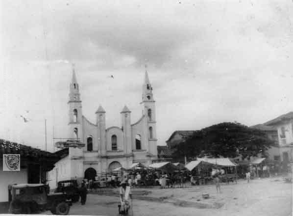 IGLESIA CONSTRUIDA EN 1661. EL TEMPLO PARROQUIAL ES EL PUNTO DE ENCUETRO ENTRE LA TRADICION FAMILIAR Y LA INTERACCION DE LA COMUNIDAD DONDE SE ARREGLABAN ENCUENTROS, NEGOCIOS Y CITAS AMOROSAS. ANSERMA NUEVO, VALLE DEL CAUCA 1960