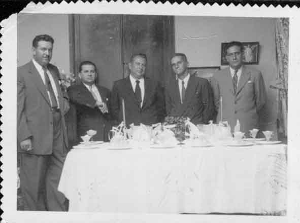 Reunión de amigos: Marco José Tawil Tabet, Julio Caicedo, Enrique Suárez, Luis Carlos Delgado y Alberto Blanco Potes. Tuluá, 1947.