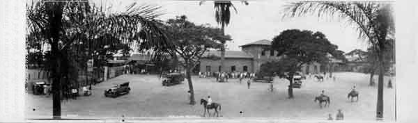 Antigua Estación del Ferrocarril en la calle 25 entre carreras 2a y 4a, desaparecida con la explosión del 7 de agosto de 1956. Santiago de Cali,fecha aproximada,1930.