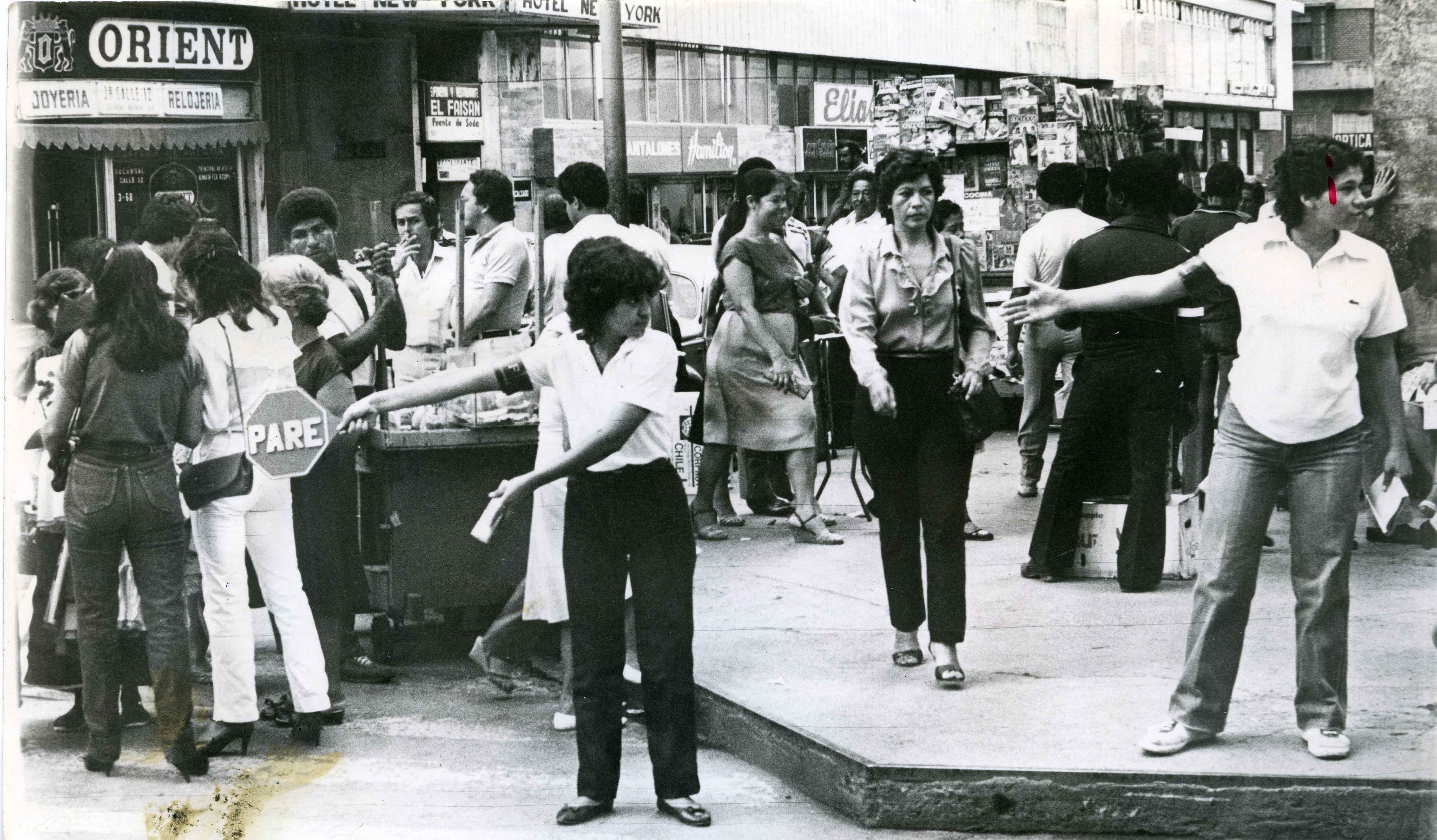 Respetando las normas de Tránsito. Estos dos jóvenes se encargan de enseñarles a las personas que se detengan mientras el semáforo esta en verde // El Archivo del Patrimonio Fotográfico y Fílmico del Valle del Cauca es responsabilidad de la Biblioteca Departamental del Valle Jorge Garcés Borrero, por convenio de cooperación suscrito con la Secretaria de Cultura Departamental, con el fin de aunar esfuerzos para su conservación, preservación y divulgación del Archivo entre la comunidad Vallecaucana, especialmente entre los estudiantes e investigadores que visitan la Biblioteca, propiciando el su uso y consulta permanente. La universidad Icesi es un colaborador en el proceso de difusión, facilitando la tecnología que permite la consulta de las imágenes.