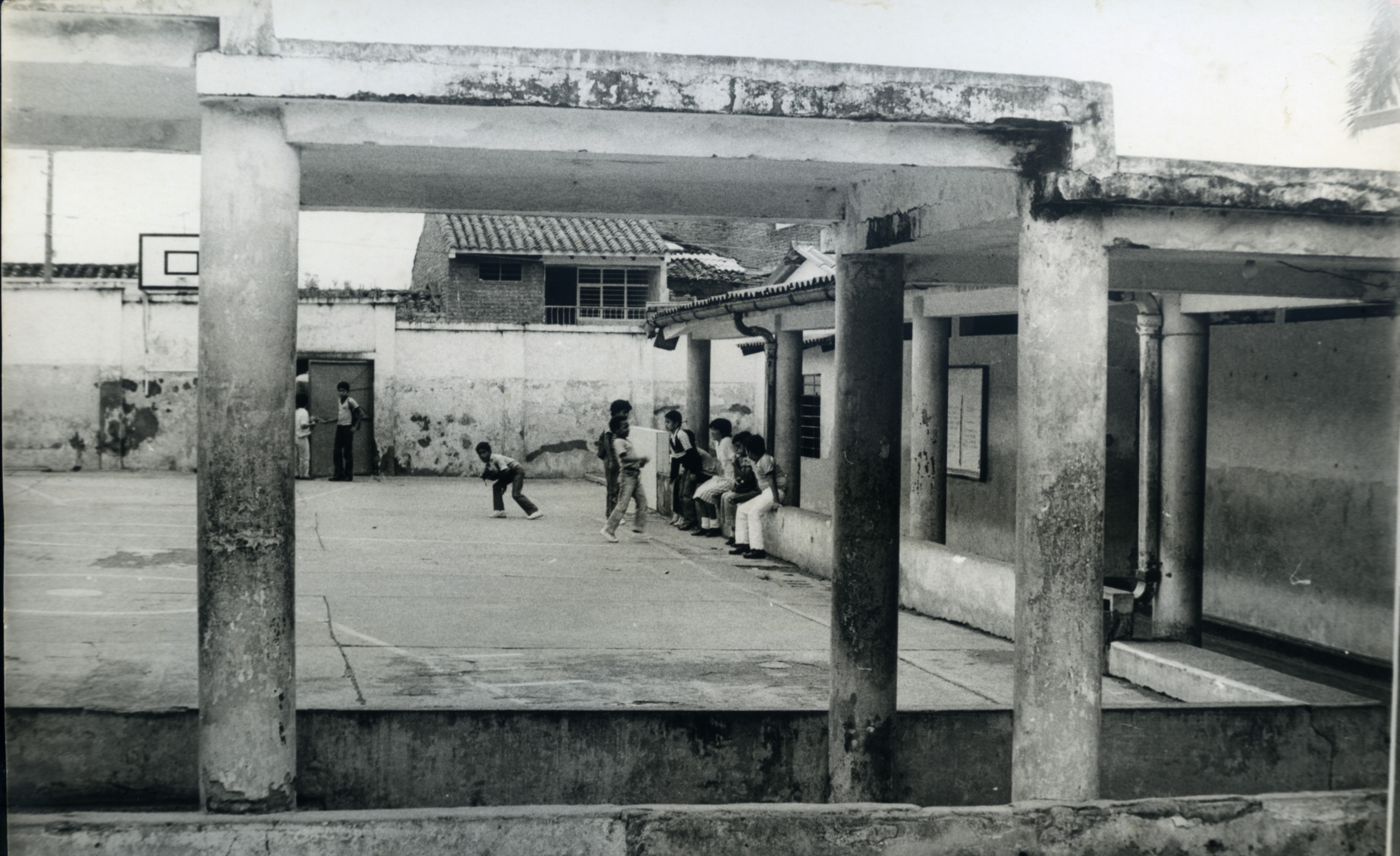 Información al reverso: Parte interna de la escuela San Roque, una de las primeras obras construidas en el barrio, que presentan problemas de carácter locativo. Se pide la intervención de la Secretaría de Educación para solucionarlo.