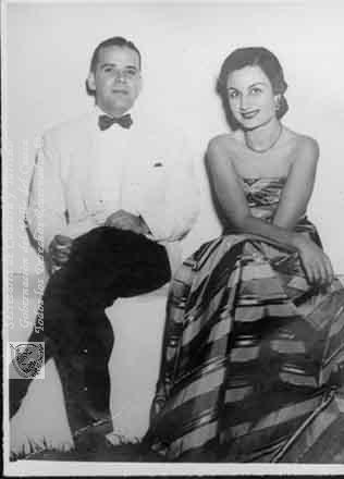 Lucía Garcés y Artemo Franco,durante una fiesta en la residencia de la familia Vidal Cuadros. Santiago de Cali,1950