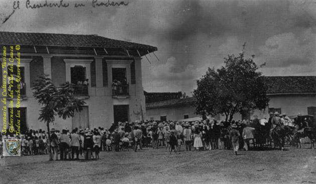 Congregación de vecinos en la plaza de Pradera durante la visita del Presidente Marco Fidel Suárez C