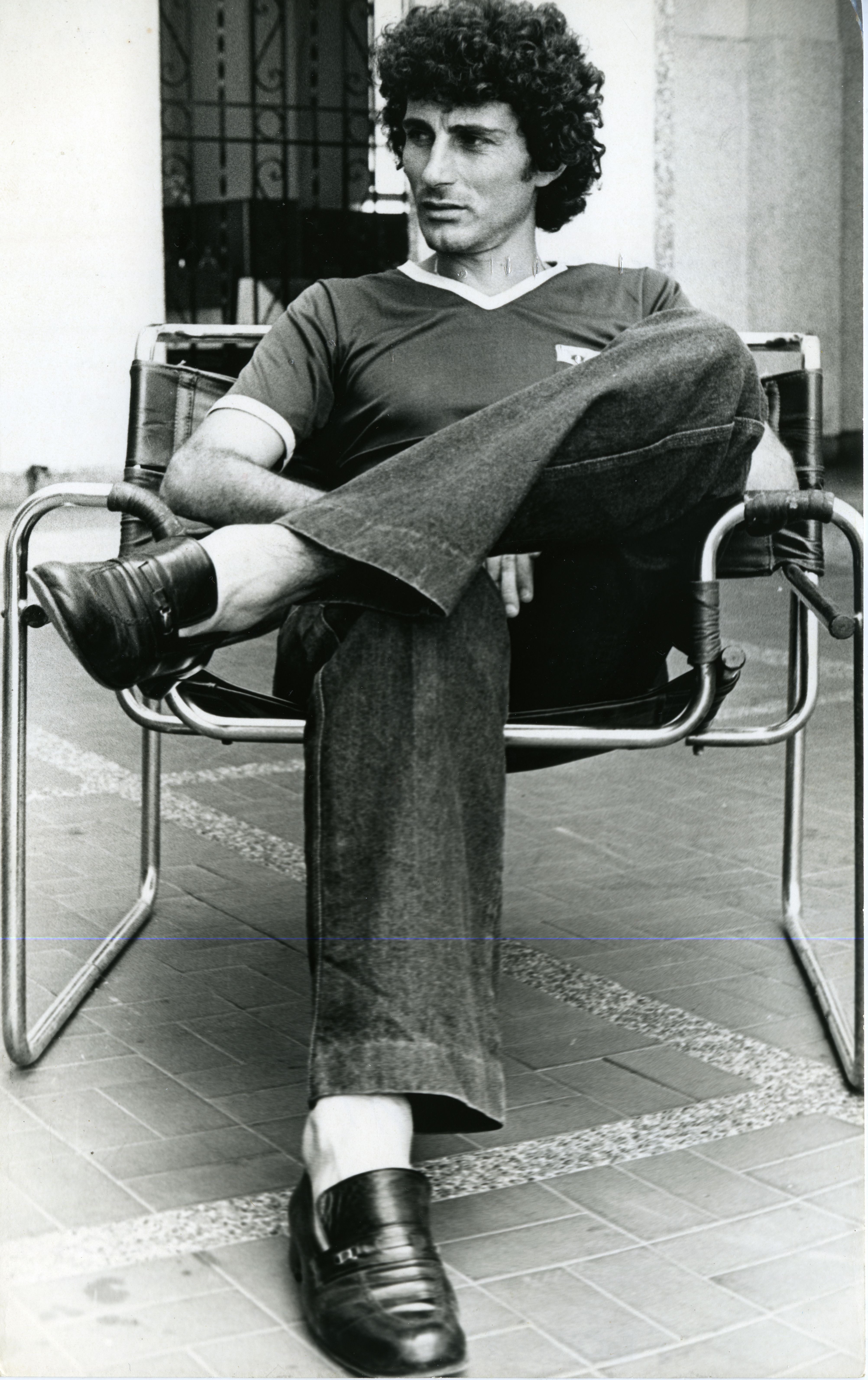 Raúl Horacio Capiello jugador del Deportivo Cali. Se aprecia a Capiello sentado en una silla