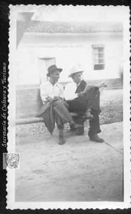 | dc.description | Don Arcadio Rojas y don Jorge Benítez departiendo en una de las bancas del parque principal. Bolívar, C.1950. | spa |